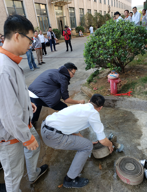 公司每年都會開展2次以上消防演練競賽活動,同時開展多次消防知識培訓,目的是讓員工提高員工安全消防意識,增強自我保護能力,學習和掌握消防安全知識及對突發火災的應變、逃生技能。今年公司于10月19日下午在廠區內開展了消防演練競賽活動,活動包含單人手提4KG干粉50m滅火、5人2盤水帶連接競賽及火災場所逃生演練,各部門員工踴躍響應號召主動參加了此次演練。